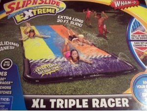 Wham-O Slip N Slide Extreme Extra Long 20 ft Triple Racer Slide Ages 5-12 Includes XL Triple Racer 2 slide anchors and 2 repair patches Extra Long 20 Ft Slide Features 3 Sliding Lanes and Extra Large Splash Zone Wall of Water on the Bumpers Easy set-up - connect to water hose and go Read More..