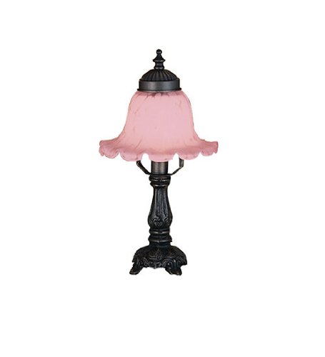 11247 Features -Mini lamp-Scalloped edge graces this lovely petal pink mottled glass bell shade paired ColorFinish -With a mahogany bronze finished mini lamp base Specifications -Accommodates 1 25W candelabra bulb Dimensions -Overall dimensions 125 H x 7 W Finish Mahogany Bronze Read More..